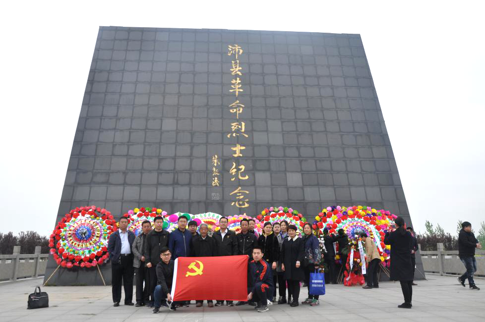 在革命烈士纪念碑前,全体同志向沛县革命烈士纪念碑敬献了花圈,默哀鞠躬,缅怀为了民族解放而无私奉献的革命烈士。在鲜红的党旗下,重温入党誓词,铿锵有力的宣誓在纪念碑下久久环绕。