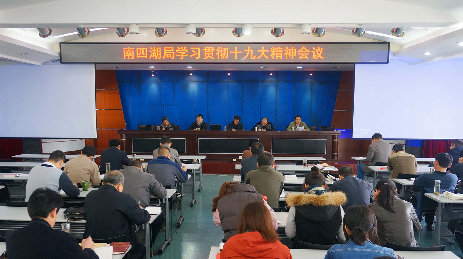 10月31日上午,南四湖局召开学习贯彻十九大精神会议,局党委书记、局长李炳文主持会议,局党委委员、副局长张志振、刘星祥、宋宗伟、孔善能,副调研员赵建海参加学习。