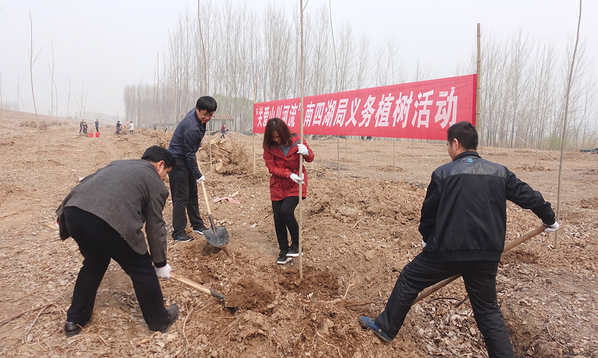 3月15日,南四湖局组织局机关干部职工赴南四湖湖西大堤开展“关爱山川河流 共建绿色四湖”义务植树活动。